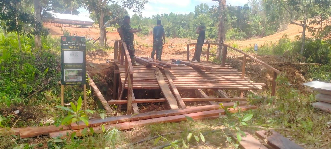 Di tengah derasnya pembangunan jalan, perhatian detail juga diberikan pada struktur vital lainnya. Penyelesaian pembatas jembatan menjadi elemen krusial yang tak hanya meningkatkan keamanan para pengguna jembatan, tetapi juga estetika infrastruktur penting yang menjadi penghubung utama kegiatan masyarakat sehari-hari. Proses pembangunan ini bukan sekadar deru alat berat, melainkan harmonisasi gerakan tangkas prajurit TNI dan semangat gotong royong warga, yang terjalin dalam suasana kebersamaan yang hangat dan penuh canda tawa, membuktikan bahwa pembangunan adalah kerja bersama yang mempererat tali silaturahmi.