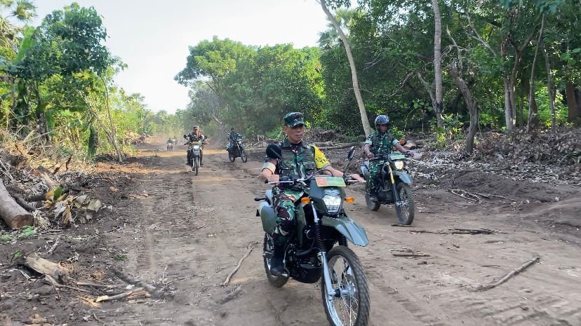 Flotim – Mengendarai kendaraan roda dua jenis motor trail, rombongan Tim Pengawasan dan Evaluasi (Wasev) dari Mabesad yang di pimpin Asops Kasad Mayjen TNI Christian Kurnianto Tehuteru tinjau langsung lokasi pembukaan jalan baru program TNI Manunggal Membangun Desa Kodim 1624/Flotim. Senin (15/09/25).