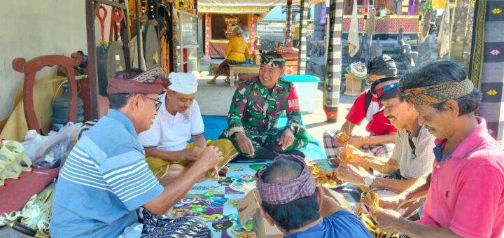 Babinsa Bunutin Terlibat Langsung dalam Persiapan Upacara Piodalan