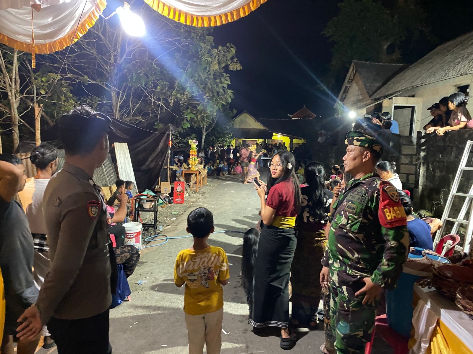 Klungkung,- Dalam rangka menjaga keamanan dan ketertiban masyarakat, Babinsa Bunga Mekar bersama Bhabinkmtibmas dan pecalang Dusun Sompang, Desa Bunga Mekar melaksanakan patroli wilayah sekaligus pengamanan acara hiburan joged yang digelar salah satu warga yang sedang melangsungkan pernikahan.