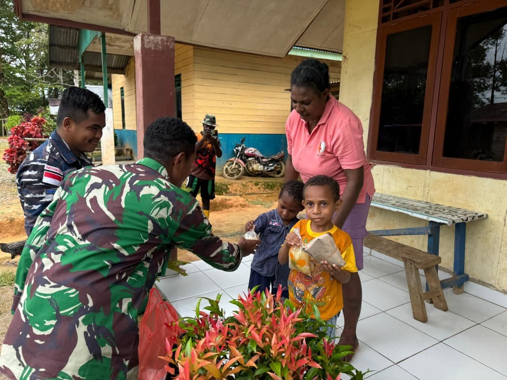 Boven Digoel, 26 Oktober 2025 – Dalam rangkaian kegiatan TMMD ke-126, Satgas Kodim 1711/Boven Digoel bersama tenaga kesehatan Kampung Waropko melaksanakan edukasi gizi dan pemberian makanan tambahan untuk anak-anak penderita stunting.
