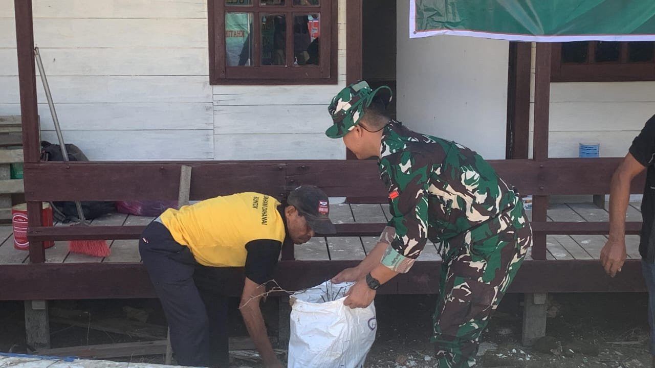 Barito Selatan – TNI Manunggal Membangun Desa (TMMD) tidak hanya berbicara soal pembangunan fisik, namun juga peduli terhadap kebersihan lingkungan. Hal itu dibuktikan oleh Satgas TMMD Kodim 1012/Buntok yang bersama warga setempat melakukan aksi pembersihan sampah di sekitar lokasi kegiatan TMMD.