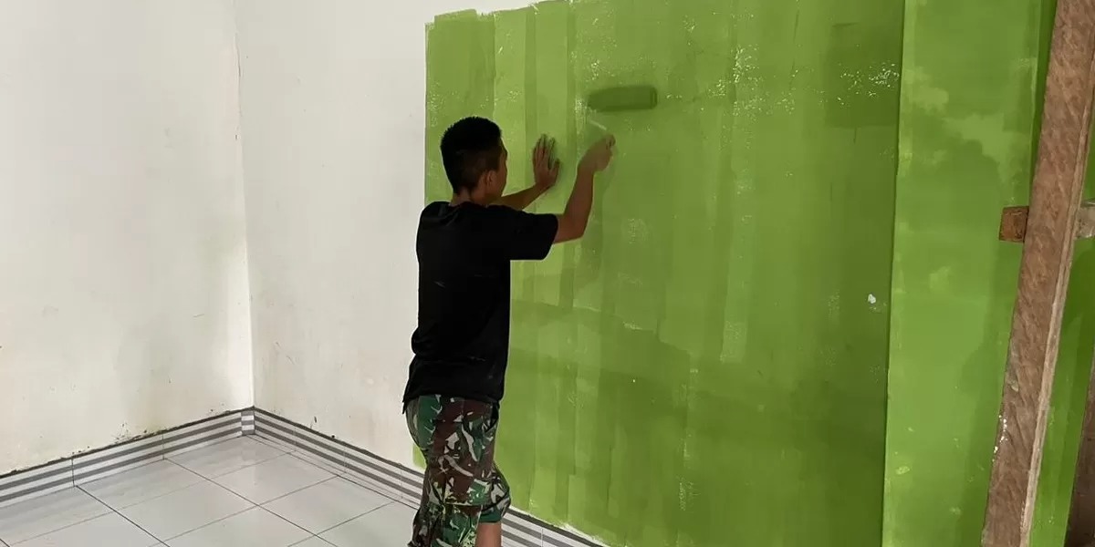 Di lapangan, anggota Satgas TMMD tampak bekerja dengan penuh ketelitian agar hasil pengecatan maksimal dan sesuai harapan warga. Setiap sudut dinding diperhatikan dengan baik guna menghasilkan tampilan yang lebih indah dan enak dipandang.