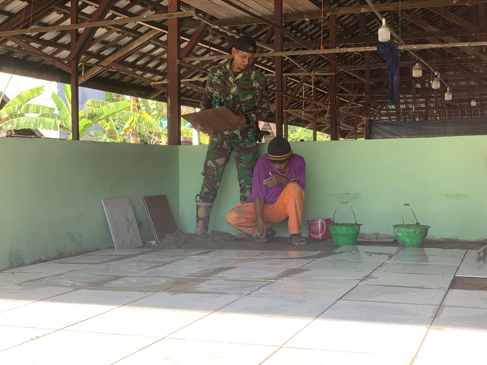 Pemasangan Keramik di Pasar Desa Talio Semakin Rapi, Satgas TMMD Kodim 1012/Buntok Terus Kebut Pekerjaan