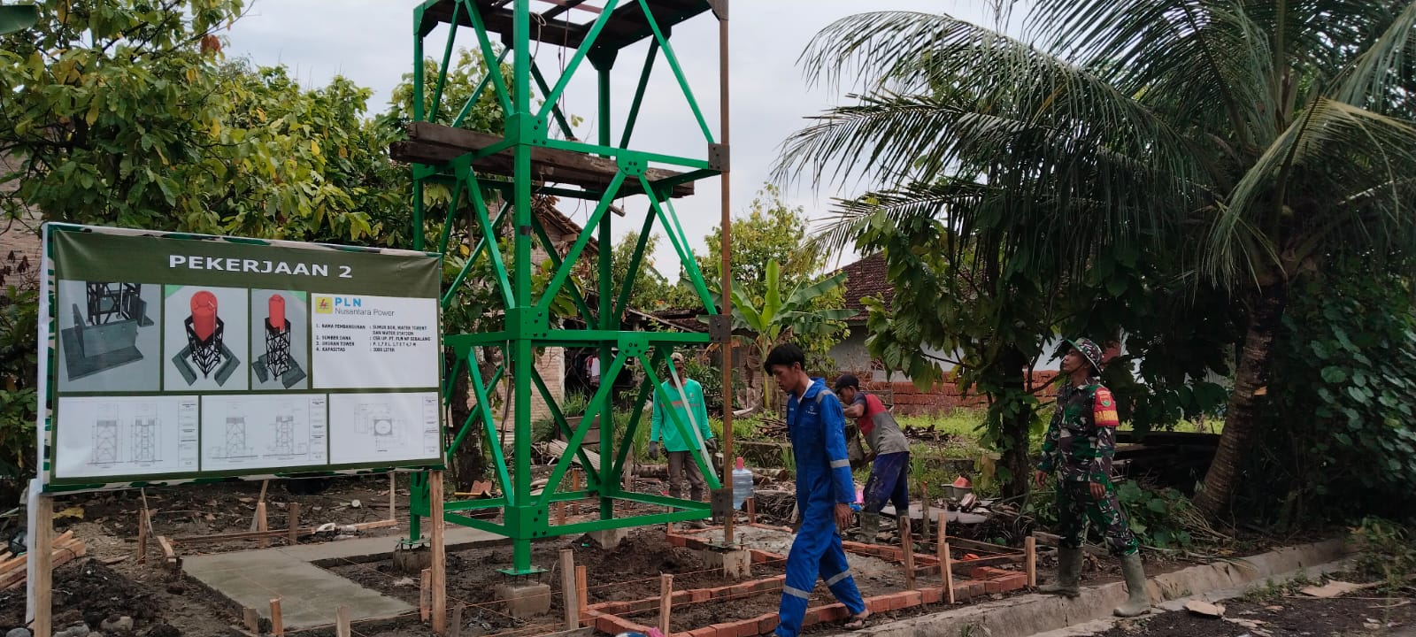 Pemasangan Tiang Tower di Sumur Bor Desa Tanjung Rejo oleh TNI