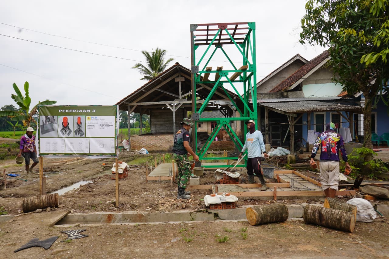 Pesawaran — Program TNI Manunggal Membangun Desa (TMMD) ke-127 yang dilaksanakan oleh Kodim 0421/Lampung Selatan terus memasuki tahap penting di Desa Tanjung Rejo. Dalam kegiatan ini, pemasangan tiang tower dilakukan di lokasi sumur bor yang dikelola oleh Bapak Triyono. Tower ini berfungsi sebagai penopang bagi tandon air yang sedang dibangun.