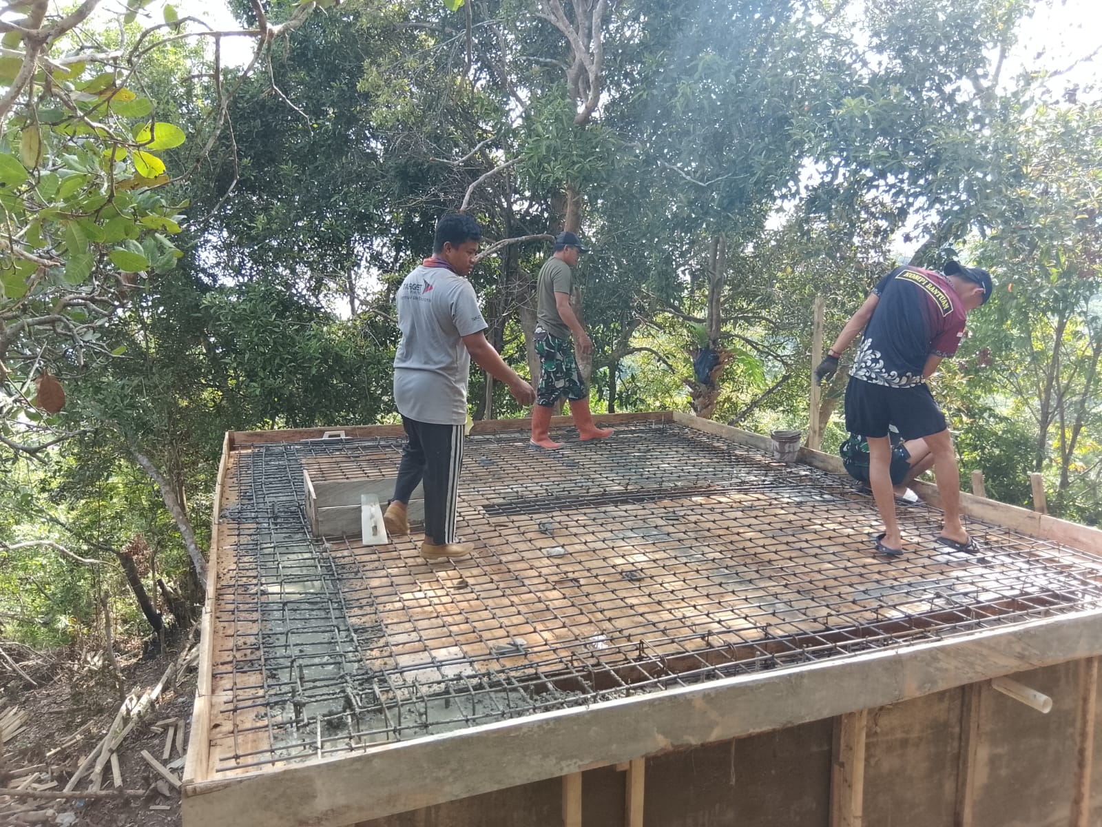Pekerjaan yang dilakukan oleh personel Satgas bersama dengan warga menunjukkan kemajuan yang signifikan, termasuk pada tahap pengecoran atap bak penampungan air.