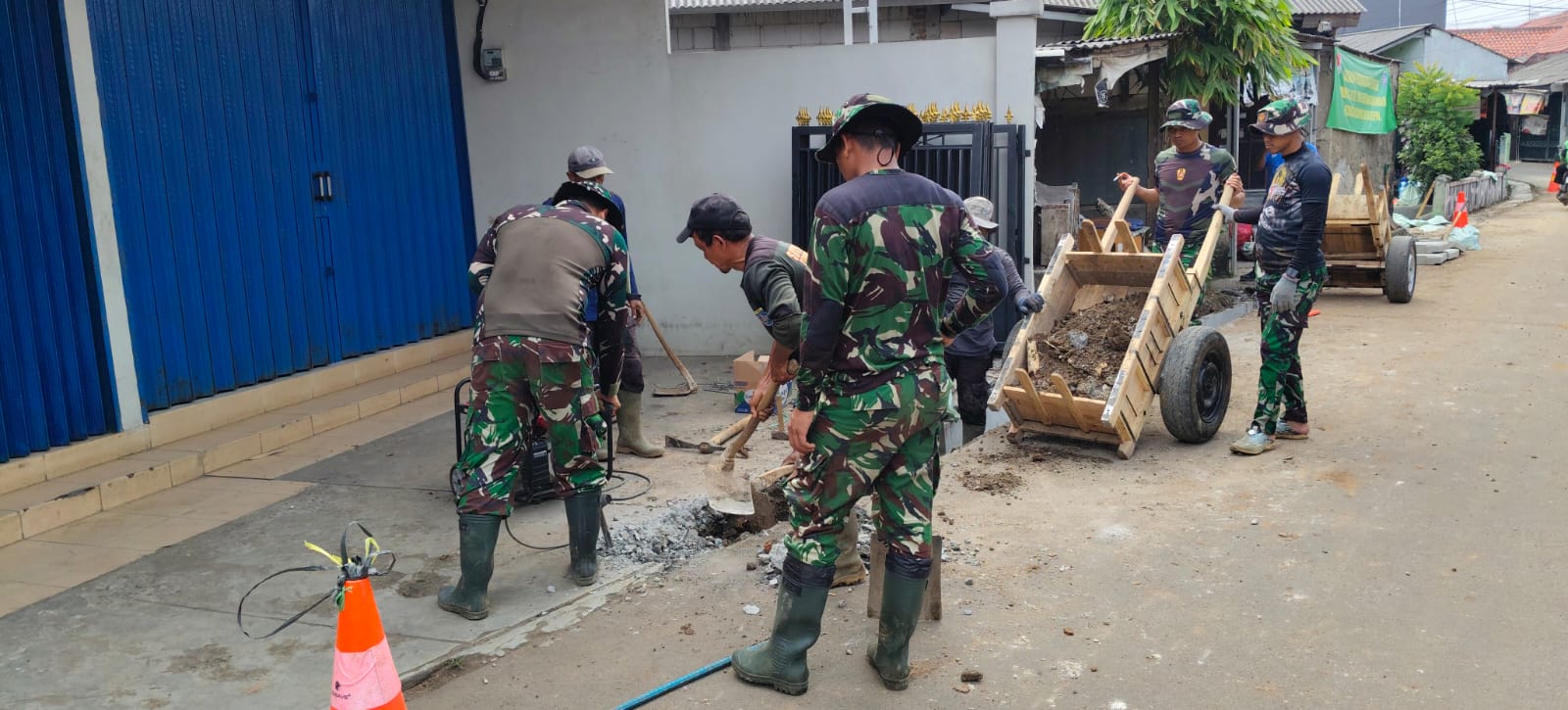 Depok – Program TNI Manunggal Membangun Desa (TMMD) Ke-127 Kodim 0508/Depok terus berupaya meningkatkan kualitas lingkungan di wilayah Depok. Salah satu proyek fisik yang saat ini sedang dilaksanakan adalah pembangunan drainase sepanjang 200 meter di Jalan Tegalsari RT 06/06, Kampung Pondok Ranggon, Kelurahan Harjamukti, Kecamatan Cimanggis.