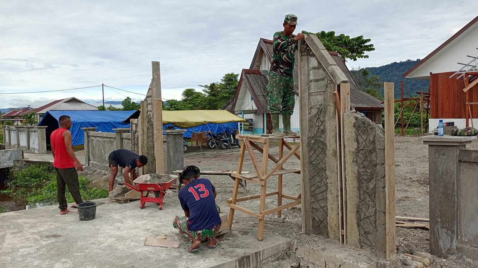 “Gapura ini akan menjadi identitas visual gereja sekaligus penanda keberadaan rumah ibadah yang dibangun bersama-sama. Kami berusaha agar hasilnya kokoh dan indah,” ujar salah satu personel Satgas TMMD di sela-sela pekerjaan.