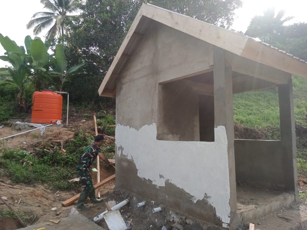 “Progres pembangunan MCK sudah mencapai 85 persen. Setelah plamir, langsung kami lanjutkan dengan pengecatan agar segera bisa digunakan warga,” ujar Sertu Abdul Syukur, personel Satgas TMMD.