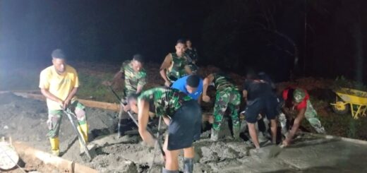 Kotawaringin Timur – Satgas TMMD ke-127 Kodim 1015/Sampit tengah mempercepat pembangunan fasilitas MCK dan tempat wudhu dengan melakukan pendropan material ke lokasi sasaran di Mushola Mudalil Muttakin, Desa Tri Buana, Kecamatan Telaga Antang, pada hari Sabtu (21/02/2026). Kegiatan ini dimulai sejak pagi, di mana personel Satgas bekerja sama dengan masyarakat setempat untuk menurunkan material bangunan yang terdiri dari semen, pasir, dan batako. Tujuan utama dari kegiatan ini adalah untuk memastikan bahwa proses pembangunan tidak mengalami kendala akibat kekurangan bahan. Letkol Inf Dwi Candra Setyawan, selaku Dansatgas TMMD ke-127, menekankan bahwa kelancaran distribusi material merupakan faktor kunci untuk mencapai target penyelesaian sasaran fisik. Ia menegaskan, “Drop material sangat penting agar pengerjaan MCK berjalan sesuai rencana dan tidak terhambat. Kami optimis seluruh sasaran dapat selesai tepat waktu.” Dengan kesiapan material yang mencukupi, pembangunan lima unit MCK yang telah direncanakan kini menunjukkan kemajuan yang signifikan dan diharapkan dapat segera dimanfaatkan oleh masyarakat.