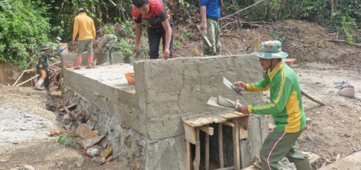 Meskipun cuaca sempat gerimis di siang hari, pengerjaan tetap berlangsung dengan lancar. Dukungan dari alat pertukangan dan koordinasi yang baik di lokasi turut mempercepat proses pembangunan.