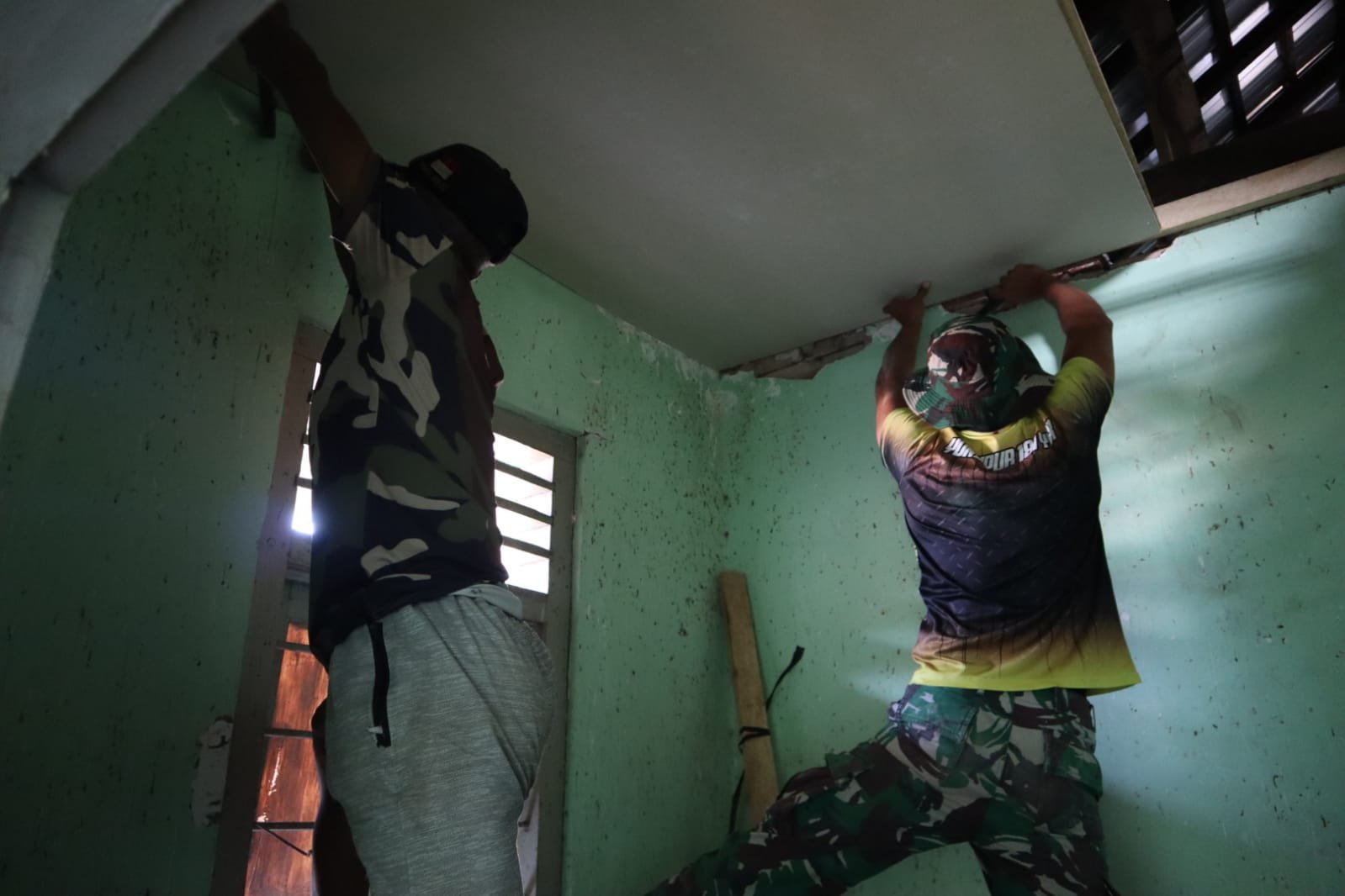 Pekerjaan pembangunan RTLH dilakukan secara bertahap dan sistematis oleh personel Satgas TMMD bersama warga setempat. Setelah struktur utama rumah selesai, kini fokus pembangunan beralih pada penyelesaian interior, salah satunya dengan pemasangan plafon sebagai elemen penting untuk kenyamanan penghuni.