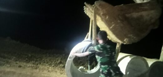 Tentara Nasional Indonesia bersama masyarakat setempat bekerja tanpa lelah, meskipun seragam mereka dipenuhi debu bata. Namun, senyum tetap terpancar di wajah mereka.