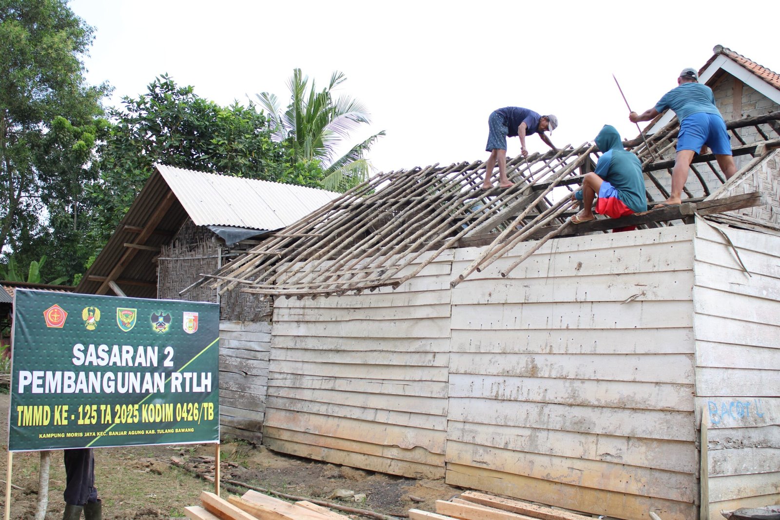 Tulang Bawang, 27 Juli 2025 – Kegiatan TNI Manunggal Membangun Desa (TMMD) ke-125 Kodim 0426/Tulang Bawang terus berlanjut dengan menyasar pembangunan Rumah Tidak Layak Huni (RTLH) di Kampung Moris Jaya, Kecamatan Banjar Agung, Kabupaten Tulang Bawang.