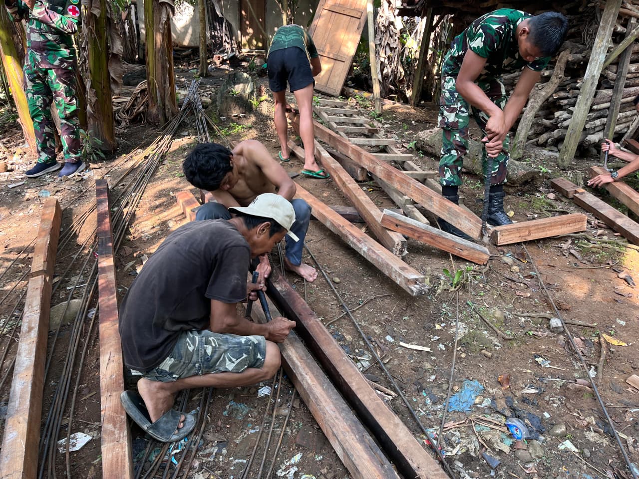 Proses pengerjaan kusen dilakukan secara intensif oleh personel Satgas bersama tenaga tukang, guna memastikan setiap bagian rumah memiliki kualitas yang baik serta siap untuk tahap pemasangan berikutnya. Kusen yang dibuat diharapkan mampu memberikan kekuatan dan ketahanan pada bangunan rumah.