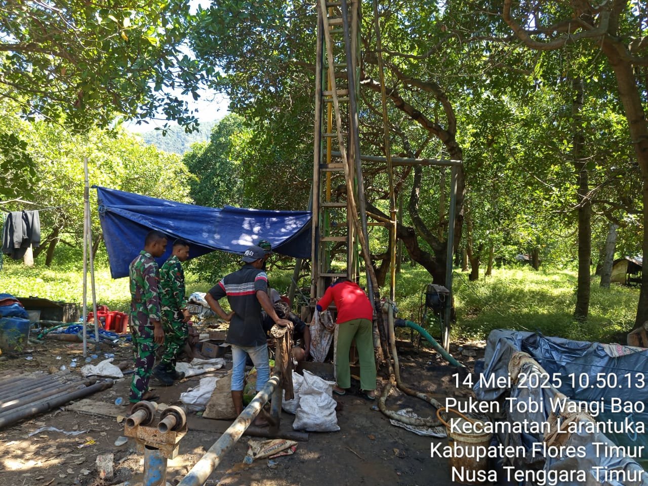Flotim – Pengerjaan sasaran fisik TMMD ke-124 Kodim 1624/Flotim terus dikebut antara lain sasaran lokasi pembangunan sumur bor yang ada di Kelurahan Sarotari dan Kelurahan Puken tobi wangibao, Kecamatan LARANTUKA, Kabupaten Flotim. Rabu (14/05/2025).