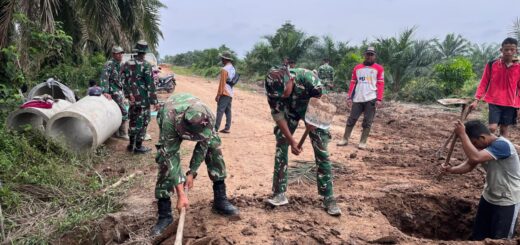Satgas TMMD bekerja sama dengan masyarakat setempat dalam proses pengerjaannya.