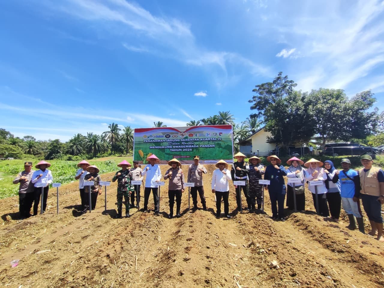 Mukomuko — Komandan Distrik Militer (Dandim) 0428/Mukomuko Letkol Inf Yokki Firmansyah, yang diwakili oleh Kapten Inf Desmayantos Selaku Danramil 428-01/Mukomuko, menghadiri kegiatan penanaman jagung serentak, Rabu (08/10/2025).