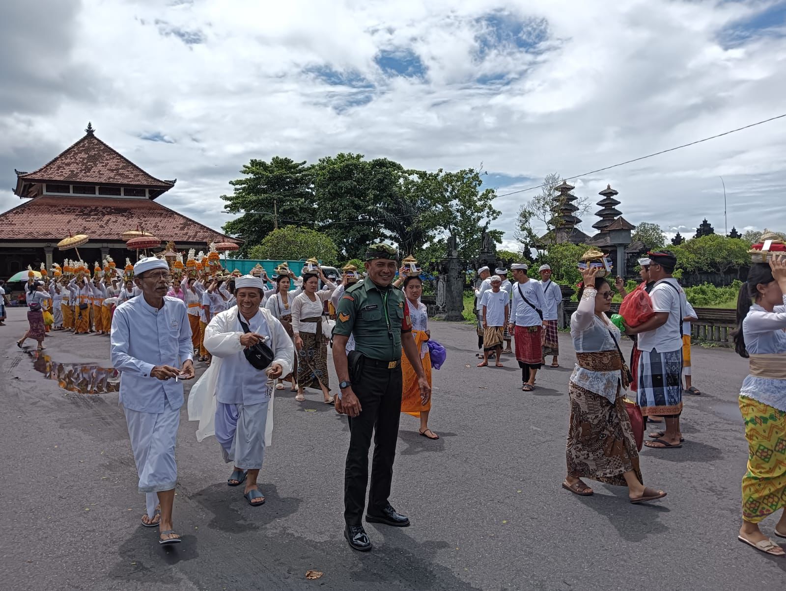 Bangli – Untuk memberikan rasa aman dan nyaman kepada masyarakat, Babinsa Kelurahan Cempaga, Serka I Nengah Artawan, bersama Bhabinkamtibmas melaksanakan pengamanan dan pengawalan Upacara Adat Melasti yang berlangsung di Ida Sesuhunan Pura Merajan Saren Kauh Banjar Adat Puri Bukit, Kelurahan Cempaga, menuju Pura Watu Klotok, Kabupaten Klungkung pada Rabu (11/2/26).