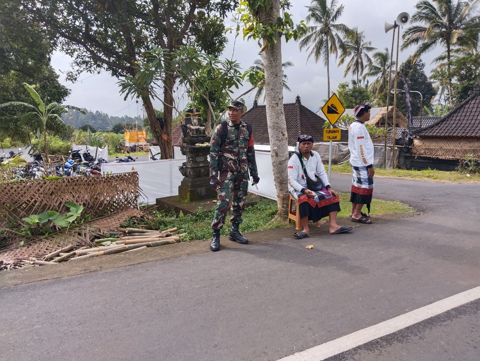 Pengamanan Upacara Pujawali di Pura Dalem, Babinsa Berperan Aktif Jamin Keamanan