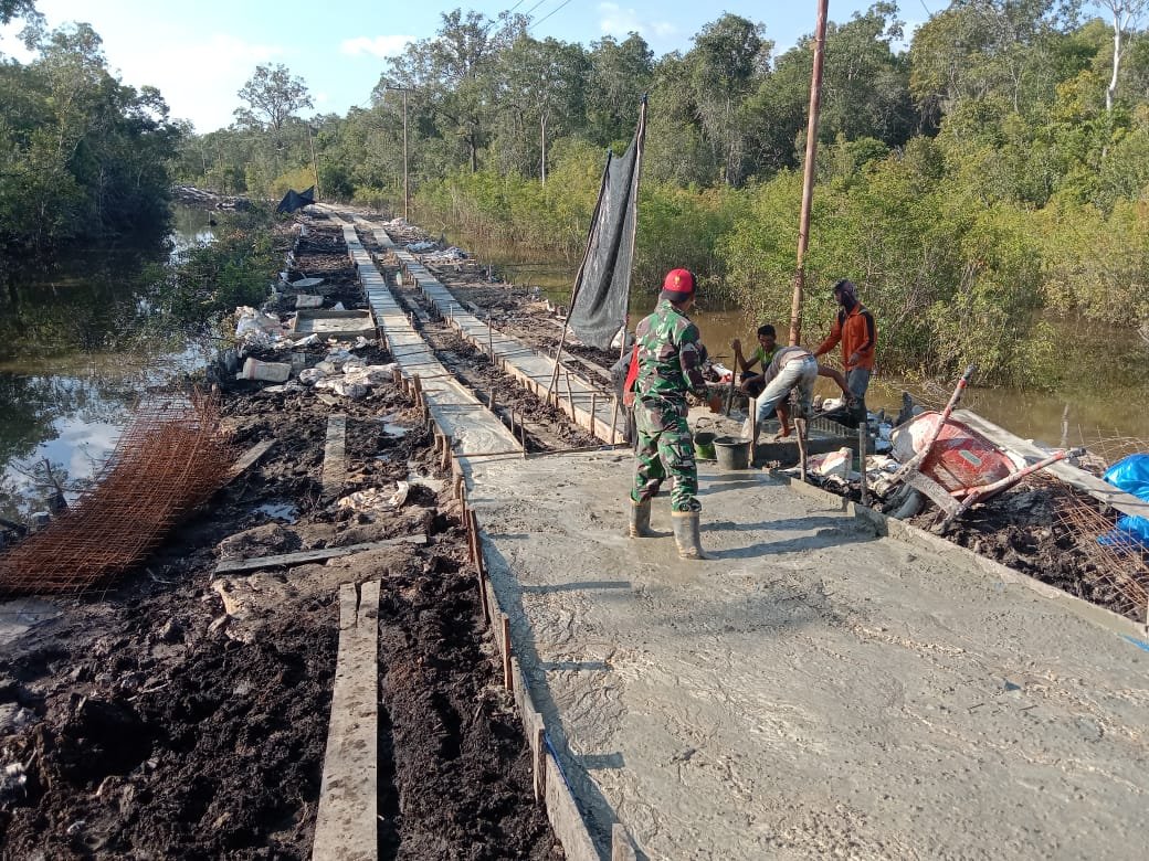 Pengecoran Jalan Penghubung Desa Talio Ditingkatkan oleh Satgas TMMD Kodim 1012/Buntok