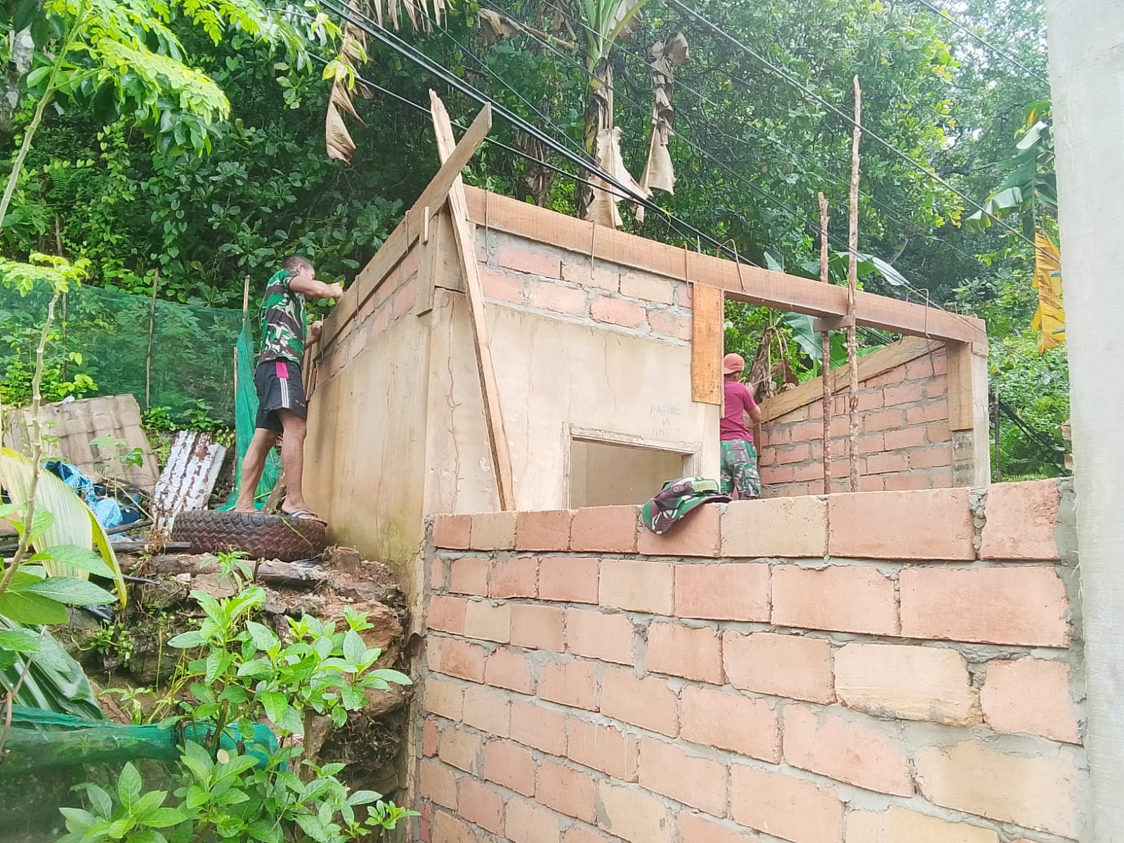 Proses pengecoran slop atas ini merupakan langkah krusial dalam memastikan kekuatan konstruksi sebelum memasuki tahap finishing. Dengan adanya kerja sama yang solid antara anggota Satgas dan masyarakat, semangat gotong royong sangat terasa di lokasi, di mana setiap individu memiliki tanggung jawab yang jelas untuk mempercepat penyelesaian proyek.