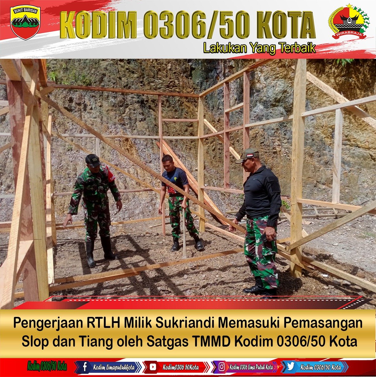 Pengerjaan RTLH Milik Sukriandi Memasuki Pemasangan Slop dan Tiang oleh Satgas TMMD Kodim 0306/50 Kota