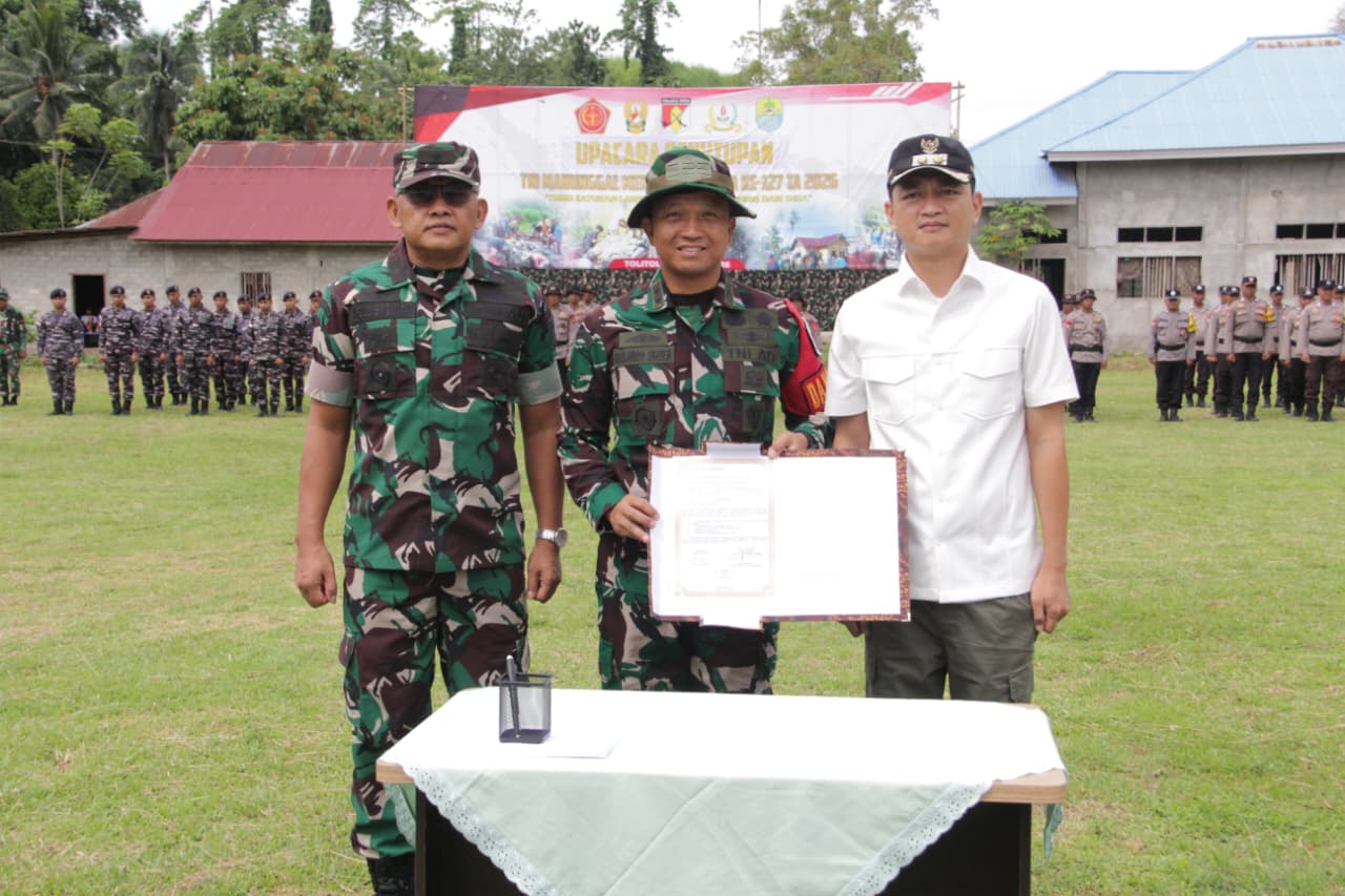 Tolitoli – Upacara penutupan Program TNI Manunggal Membangun Desa (TMMD) ke-127 Tahun Anggaran 2026 yang diselenggarakan oleh Kodim 1305/Buol Tolitoli berlangsung di Desa Oyom, Kecamatan Lampasio, Kabupaten Tolitoli pada Rabu (11/3/2026). Kegiatan ini berlangsung selama 30 hari dan berhasil menyelesaikan berbagai target pembangunan fisik serta non fisik.