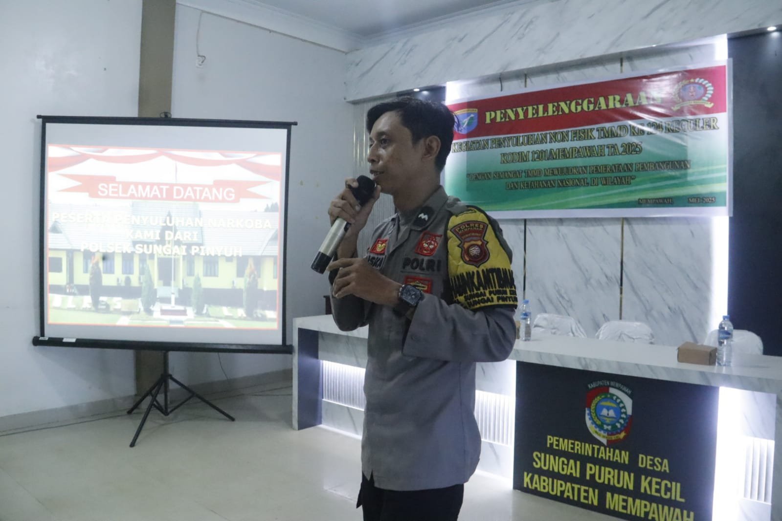 Mempawah – Sebagai bagian dari kegiatan non-fisik dalam program TNI Manunggal Membangun Desa (TMMD) ke-124, penyuluhan tentang Keamanan dan Ketertiban Masyarakat (Kamtibmas) serta bahaya narkoba digelar di Desa Purun Kecil, Kecamatan Sungai Pinyuh, Kabupaten Mempawah. Kegiatan ini menghadirkan pemateri dari Polsek Sungai Pinyuh, yaitu Aipda Eko Prasojo dan Aipda Riska Kurniawan.