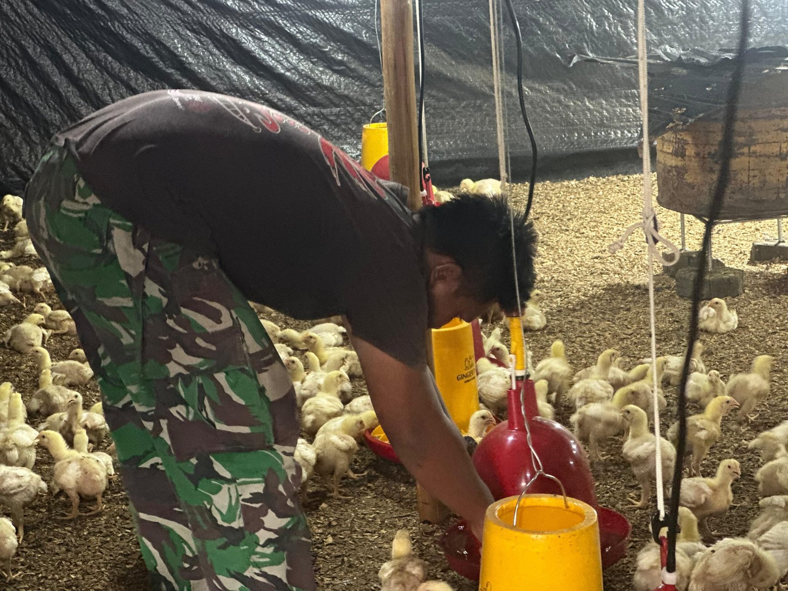Perawatan Ayam Potong oleh Satgas TMMD Dorong Ketahanan Pangan di Sababillah