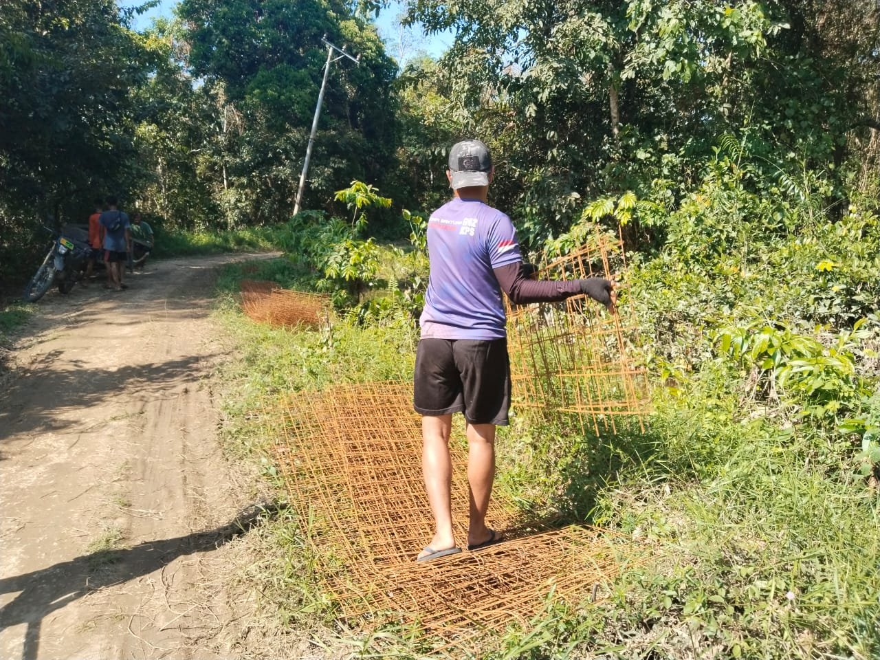 Besi coran tersebut merupakan komponen penting dalam proses pengecoran agar jalan yang dibangun memiliki struktur yang kuat dan tahan lama. Medan yang cukup berat tidak menjadi halangan bagi para personel Satgas dalam menjalankan tugas mereka.