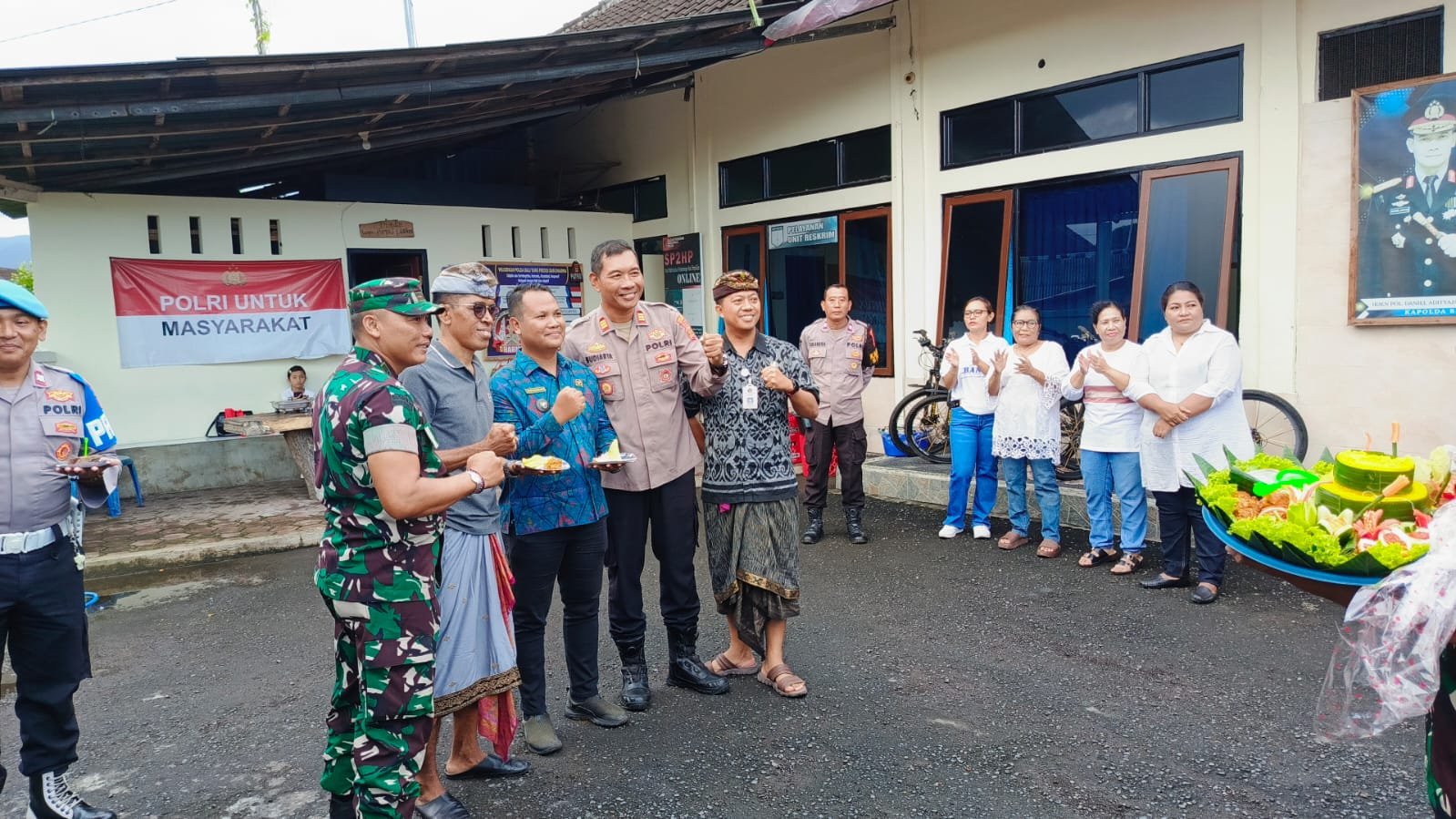 Pjs Danramil 1610-03/Dawan Lettu Inf Ketut Joni menyampaikan menyampaikan bahwa kedatangannya bersama anggota, pak Camat dan seluruh perbekel ini tiada lain untuk memberikan sebuah kejutan di Hari Bhayangkara ke 79.