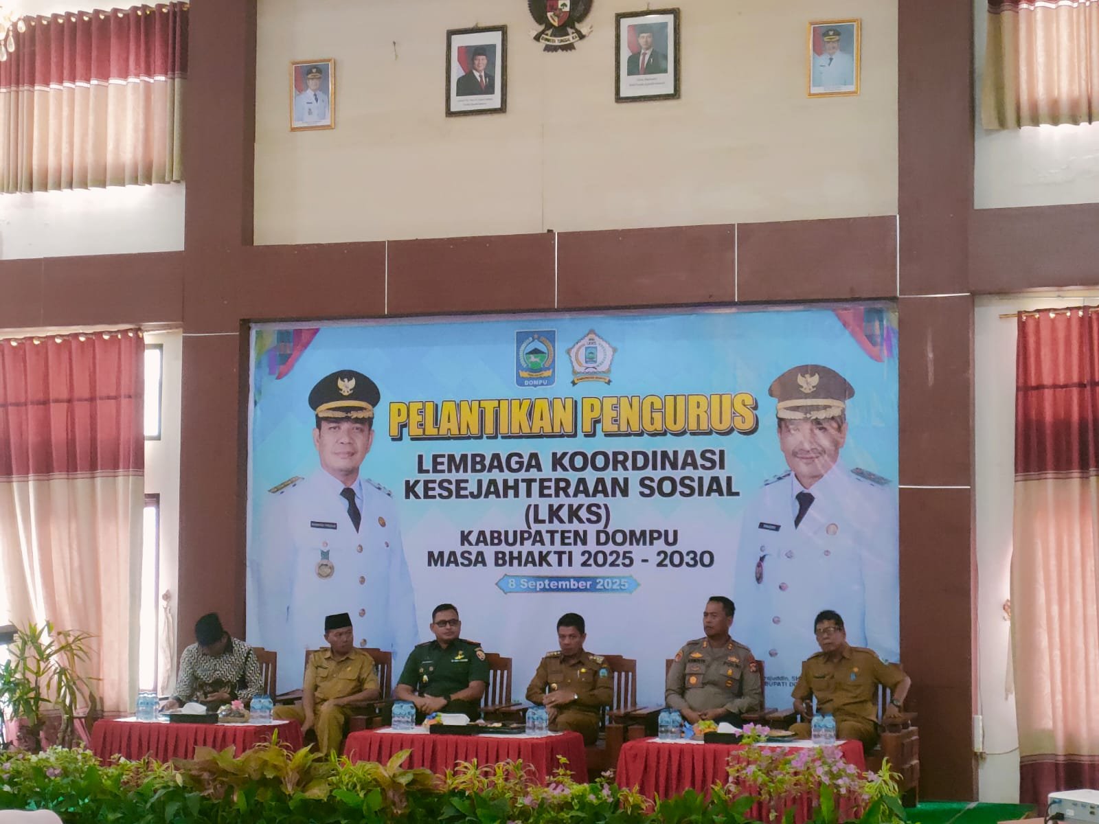 Dompu NTB– Pelantikan pengurus Lembaga Koordinasi Kesejahteraan Sosial (LKKS) Kabupaten Dompu periode 2025–2030 berlangsung khidmat di Aula Pendopo Bupati Dompu, Senin (8/9/2025). Acara yang dipimpin langsung oleh Bupati Dompu, Bambang Firdaus, SE., ini turut dihadiri jajaran Forkopimda, tokoh masyarakat, serta ratusan undangan.