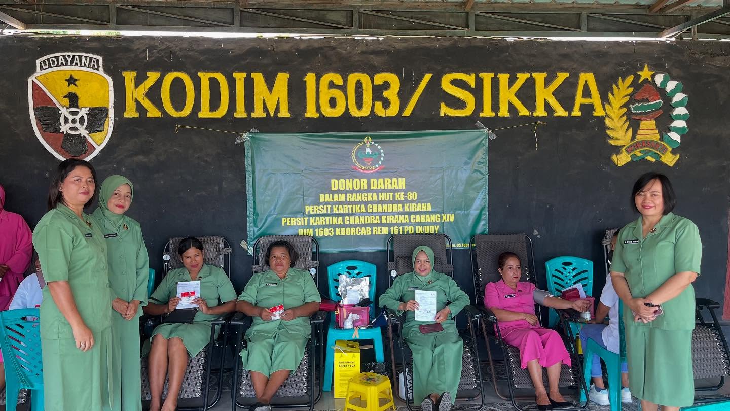 Sikka – Dalam rangka memperingati Hari Ulang Tahun (HUT) ke-80 Persit Kartika Chandra Kirana pada tahun 2026, Persit KCK Cabang XIV Kodim 1603/Sikka menggelar kegiatan bakti sosial donor darah. Acara ini dilaksanakan di Markas Kodim 1603/Sikka yang terletak di Jalan Jenderal Sudirman, Kelurahan Waioti, Kecamatan Alok Timur, Kabupaten Sikka, pada hari Kamis (05/02/2026).