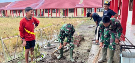Mempawah – Wujud kemanunggalan TNI dan rakyat kembali terlihat dalam pelaksanaan program TNI Manunggal Membangun Desa (TMMD) Reguler ke-124. Di sela-sela kegiatan pembangunan fisik, personel Satgas TMMD turut membantu petani memupuk tanaman padi di sawah milik warga desa setempat.