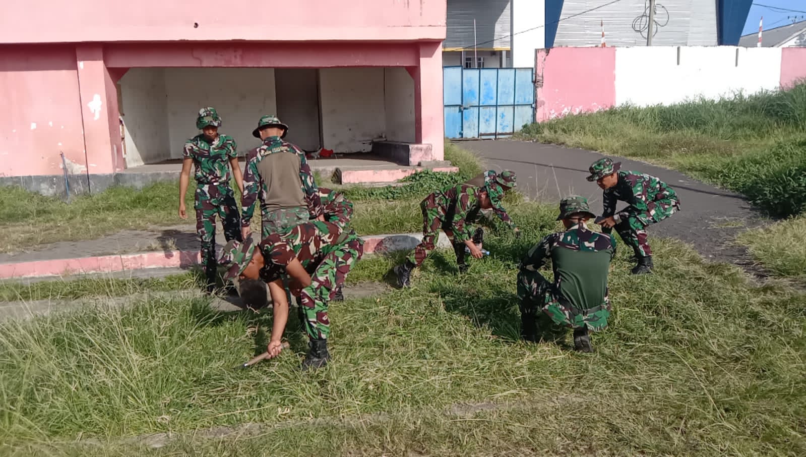 Personel TNI Lakukan Kerja Bakti Bersih Lingkungan di Stadion Duasudara Bitung