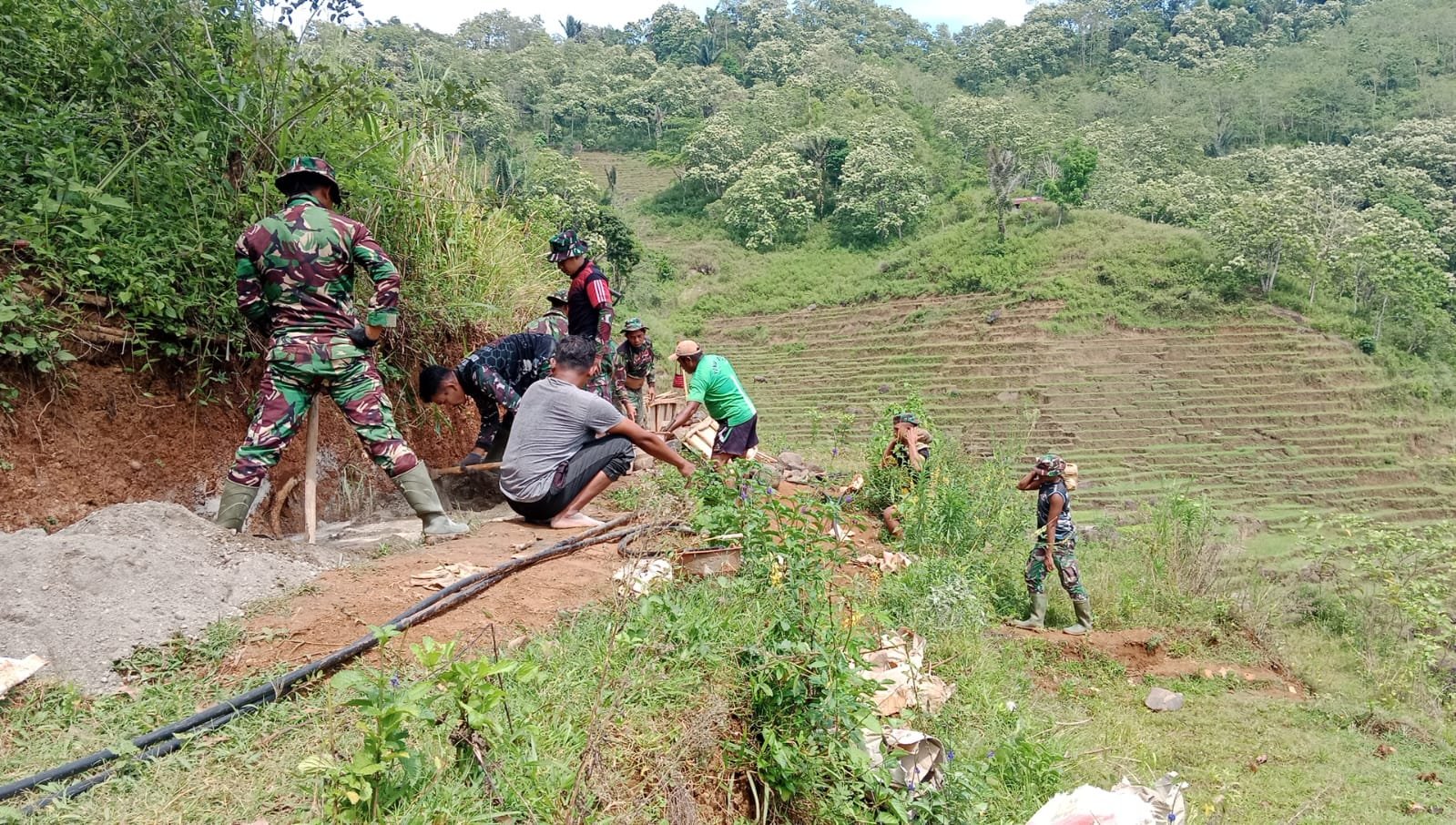 “Setiap hari kami turun membantu. Rasanya bangga bisa bekerja bersama TNI demi kebaikan desa kami,” tambahnya.