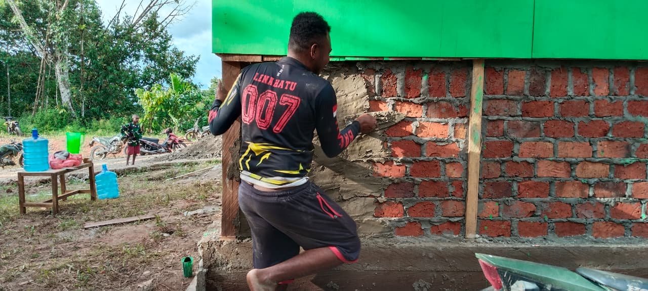 “Kami terus bekerja sesuai target waktu. Plaster dinding ini menjadi penanda bahwa pekerjaan sudah semakin dekat menuju tahap akhir seperti pemasangan lantai dan pengecatan,” ujar salah satu anggota Satgas TMMD.