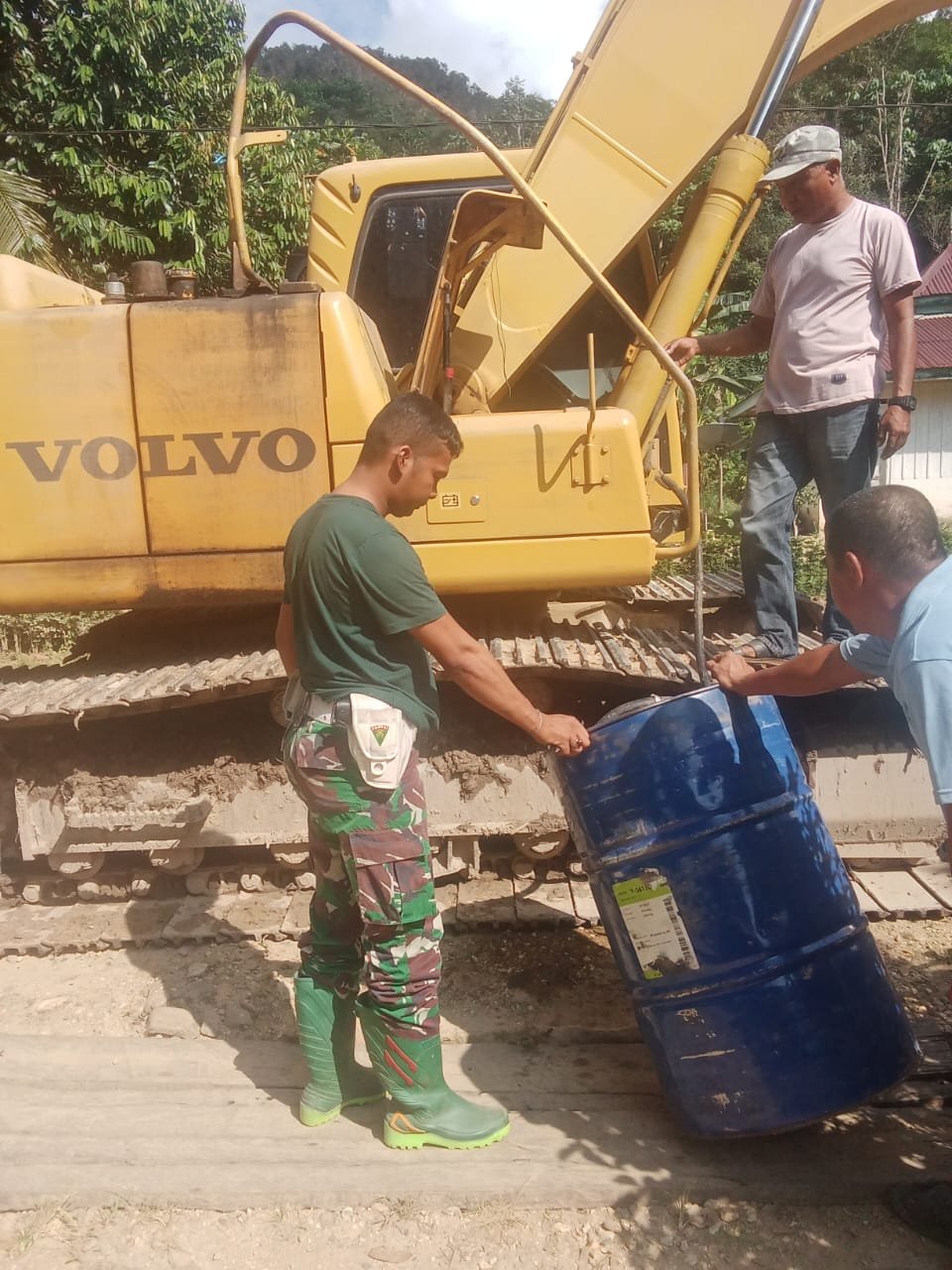 Konawe, 24 Juli 2025 — Dalam rangka mendukung kelancaran dan percepatan pembangunan fisik program TNI Manunggal Membangun Desa (TMMD) ke-125 Kodim 1417/Kendari, anggota Satgas TMMD Pratu Fadli memastikan ketersediaan bahan bakar minyak (BBM) untuk alat berat di lokasi pekerjaan di Desa Garuda, Kecamatan Padangguni, Kabupaten Konawe, Kamis (24/7).
