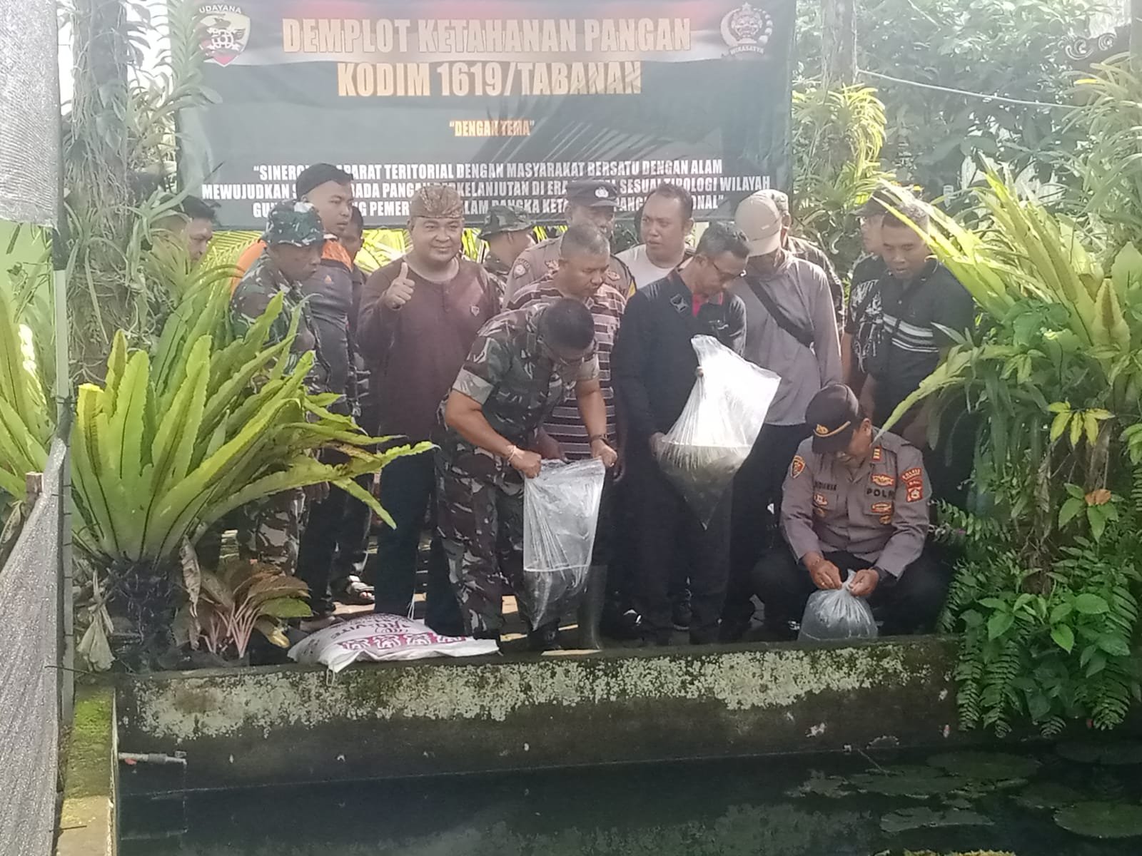 Tabanan – Dalam rangka mendukung program ketahanan pangan (Hanpangan), Komando Distrik Militer (Kodim) 1619/Tabanan melalui Koramil 1619-05/Kerambitan melaksanakan kegiatan penebaran bibit ikan nila jenis Gief di Demplot Hanpangan Koramil 1619-05/Kerambitan, Desa Sembung Gede, Kec. Kerambitan, Jumat (25/7/2025), dengan melibatkan unsur Forkopimcam Kerambitan dan masyarakat setempat.