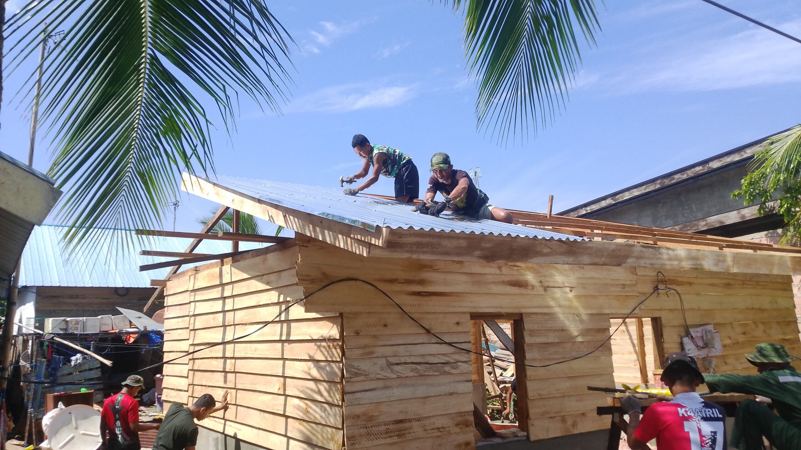 Pada tahap terkini, anggota Satgas TMMD berkolaborasi dengan masyarakat setempat untuk memasang material atap baru, yang merupakan bagian dari proses akhir pembangunan rumah. Hal ini menandakan bahwa renovasi hunian telah mencapai fase finishing, sehingga rumah yang diperbaiki akan segera dapat dihuni oleh pemiliknya.
