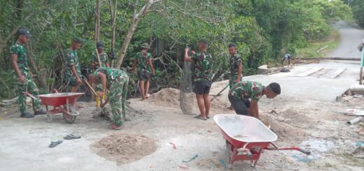 Kapten Inf Leonard Sahulata selaku Wakil Komandan Satgas (Wadan Satgas) yang memimpin kegiatan di lapangan, menegaskan pentingnya pengoptimalan tenaga dan waktu agar pembangunan jembatan bisa selesai sesuai dengan target yang ditentukan.