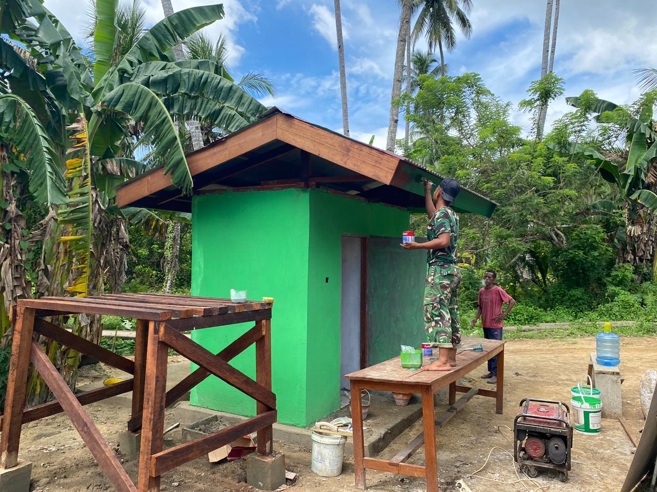 Progres 74 Persen, TMMD 127 Kodim 1804/Kaimana Lanjutkan Pengecatan List MCK di Samping Gereja Oraid Labora