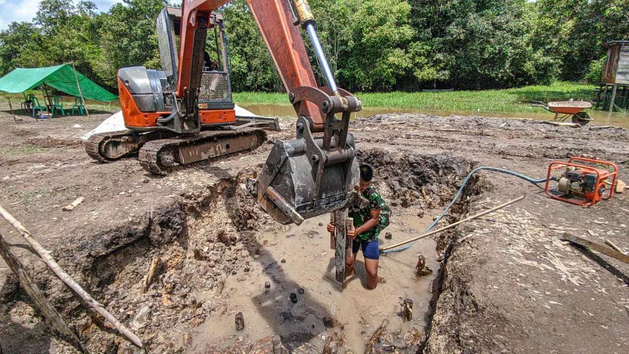 Tidak hanya mengandalkan tenaga manual, proyek ini juga didukung oleh pengerahan alat berat yang digunakan untuk menggali pondasi jembatan. Kehadiran alat berat ini mempercepat proses konstruksi serta memastikan kedalaman dan kekuatan pondasi sesuai dengan standar yang ditetapkan.
