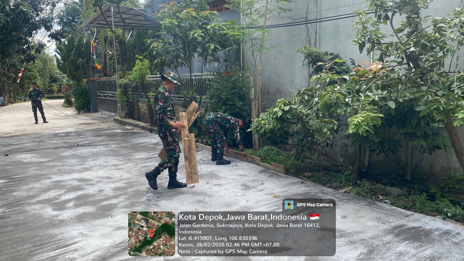 Depok – Program TNI Manunggal Membangun Desa (TMMD) Ke-127 Tahun Anggaran 2026 yang dikelola oleh Kodim 0508/Depok terus menunjukkan perkembangan yang positif. Salah satu target fisik utama, pengerasan jalan di GDC Sektor Gardenia Blok Q RT 03/07, Kelurahan Tirtajaya, Kecamatan Sukmajaya, Kota Depok, kini telah mencapai progres sebanyak 75 persen.