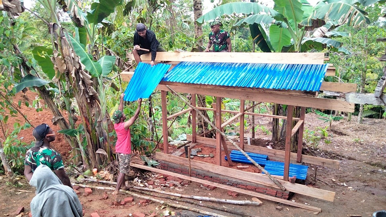 Progres Positif, Satgas TMMD ke-126 Kodim 1711/BVD Pasang Atap MCK di Kampung Waropko