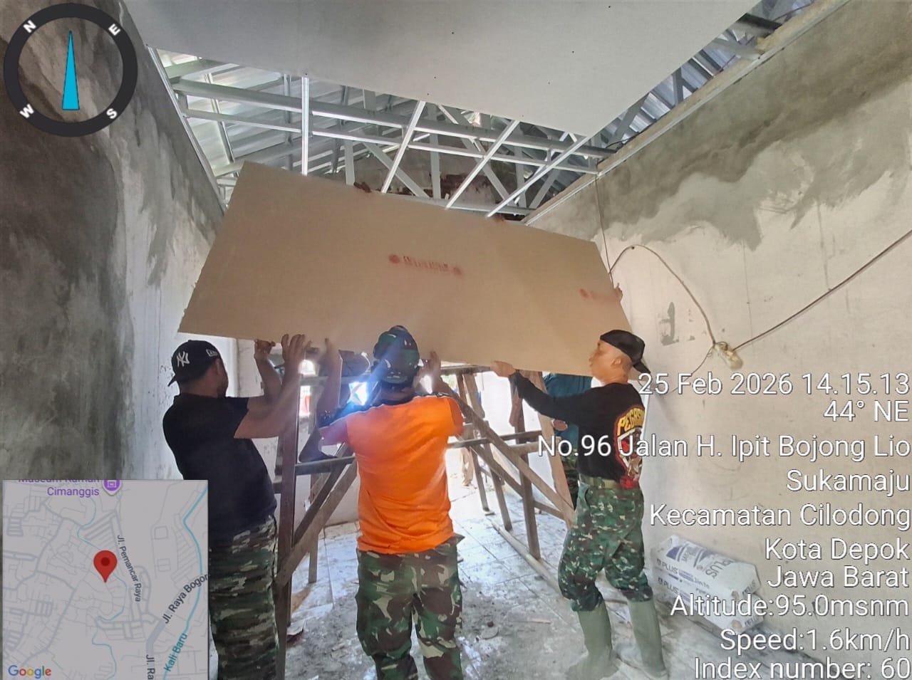 Depok – Program Rehabilitasi Rumah Tidak Layak Huni (RTLH) yang dilaksanakan dalam kegiatan TMMD Ke-127 Tahun Anggaran 2026 oleh Kodim 0508/Depok menunjukkan kemajuan yang menggembirakan. Pada hari ke-15, tepatnya Rabu (25/2/2026), pengerjaan RTLH milik Bapak Saelan Abidin yang terletak di Kelurahan Sukamaju, Kecamatan Cilodong, Kota Depok telah mencapai 63 persen.