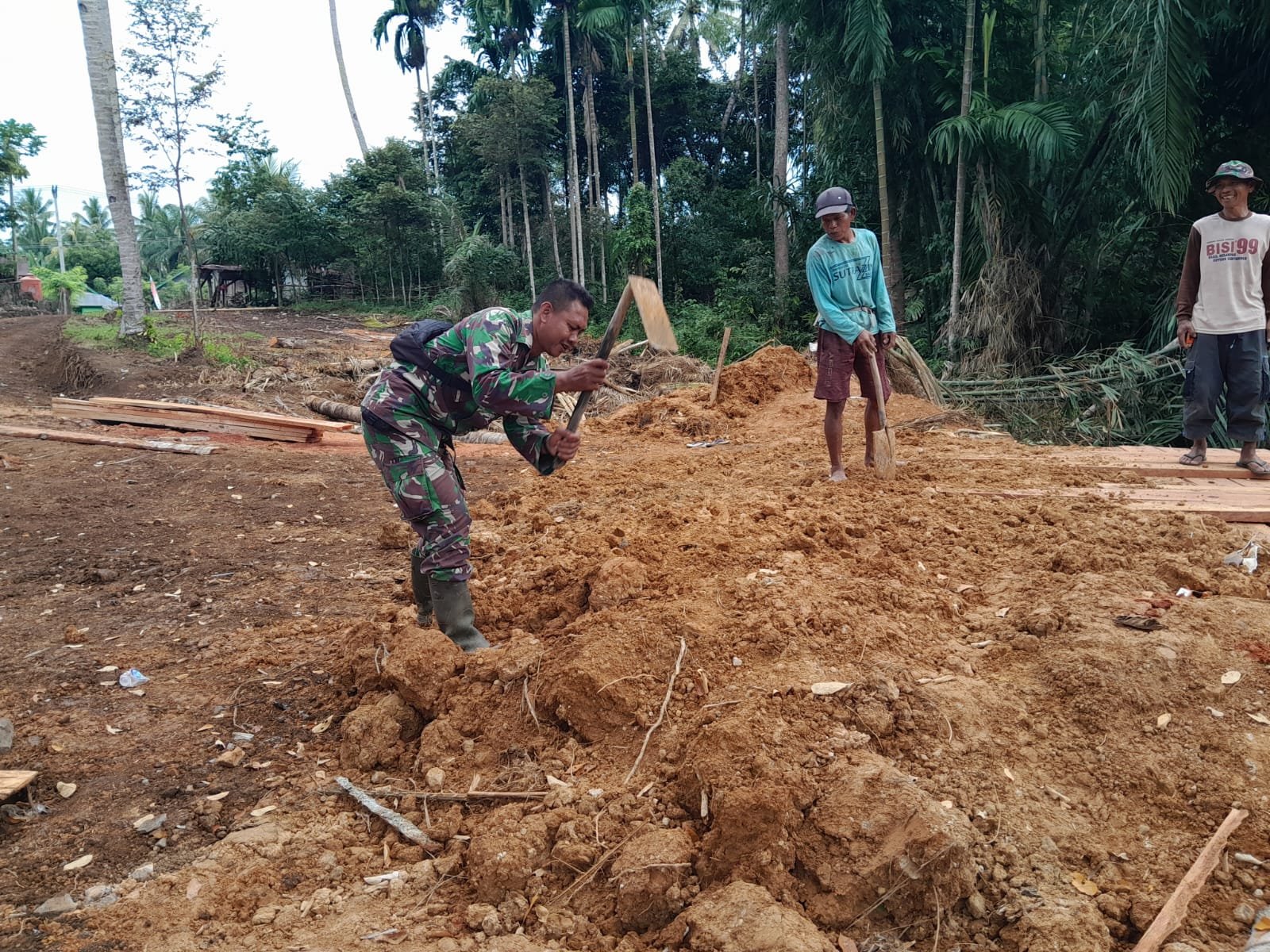 Komandan Satuan Tugas (Satgas) TMMD ke- 124 Kodim 0408/BS Letnan Kolonel Czi Bambang Santoso,S.H.,M.SDS mengatakan personelnya dan di bantu masyarakat telah menyelesaikan mengerjakan pembangunan jembatan kayu Saat ini pengerjaan jembatan sudah mulai pemasangan struktur kayu. “Ungkap Dansatgas TMMD”.
