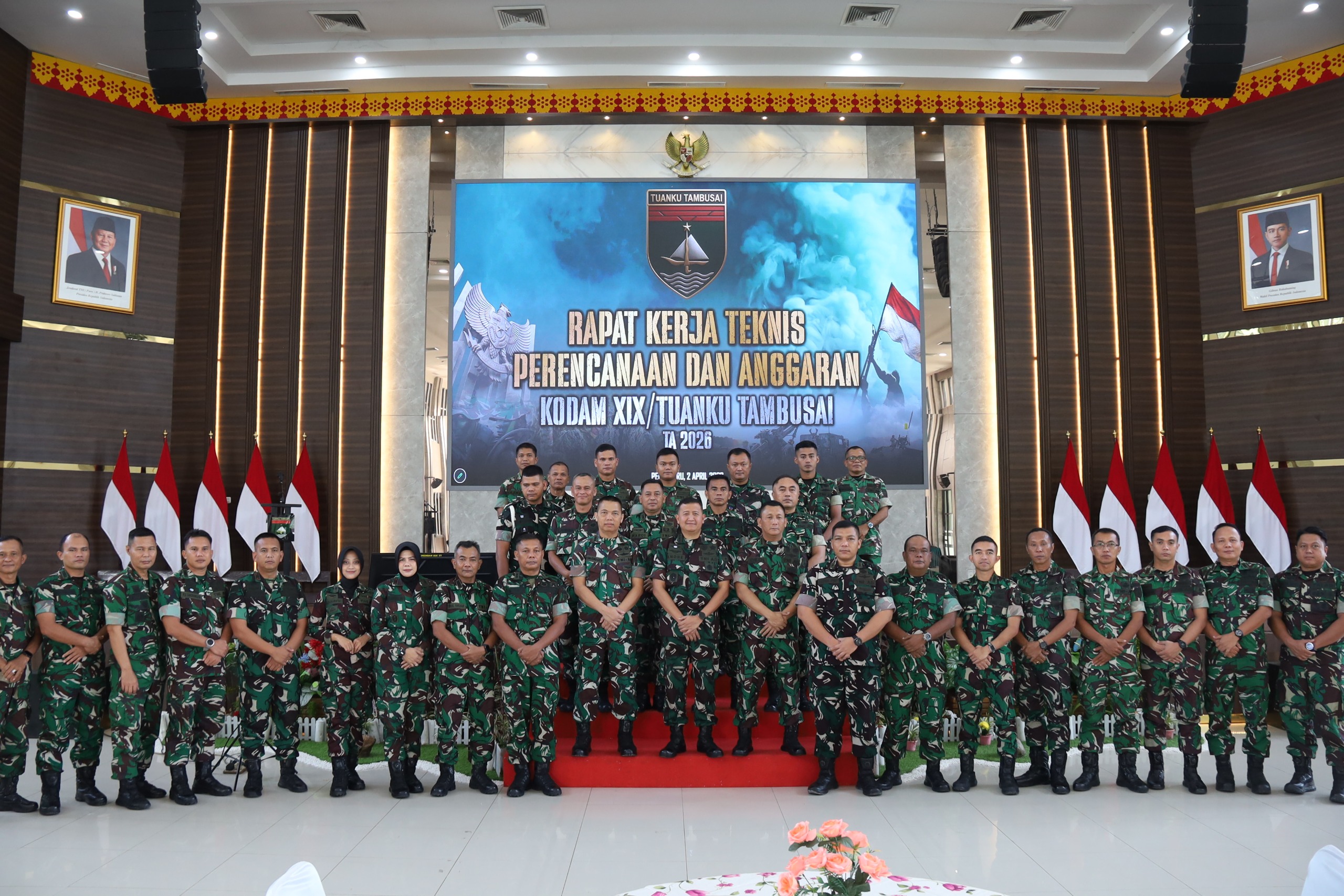 PEKANBARU || Kodam XIX/Tuanku Tambusai menyelenggarakan Rapat Kerja Teknis (Rakernis) di bidang Perencanaan dan Anggaran, yang berlangsung dengan tertib dan penuh penghormatan. Acara ini dibuka secara resmi oleh Asisten Perencanaan Kodam XIX/Tuanku Tambusai, Kolonel Arh Antonius Andre Wira K., S.AP., M.Si., dan dihadiri oleh seluruh pejabat yang bertanggung jawab atas perencanaan satuan kerja (Satker) serta perbendaharaan di lingkungan Kodam pada Kamis, 2 April 2026.